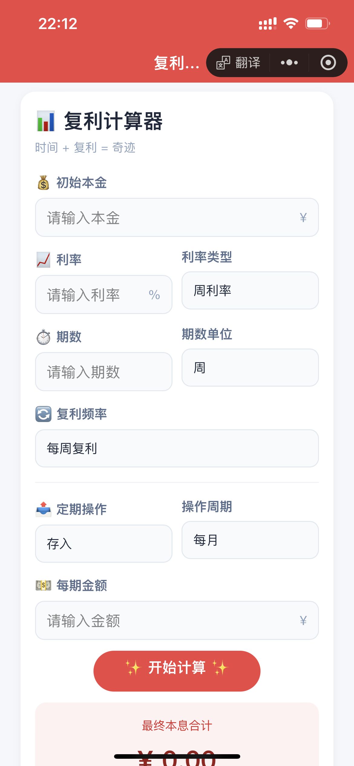 去微信搜索小程序复利计算器找到复利计算器计划小程序点击进去,在里边随便操作一下