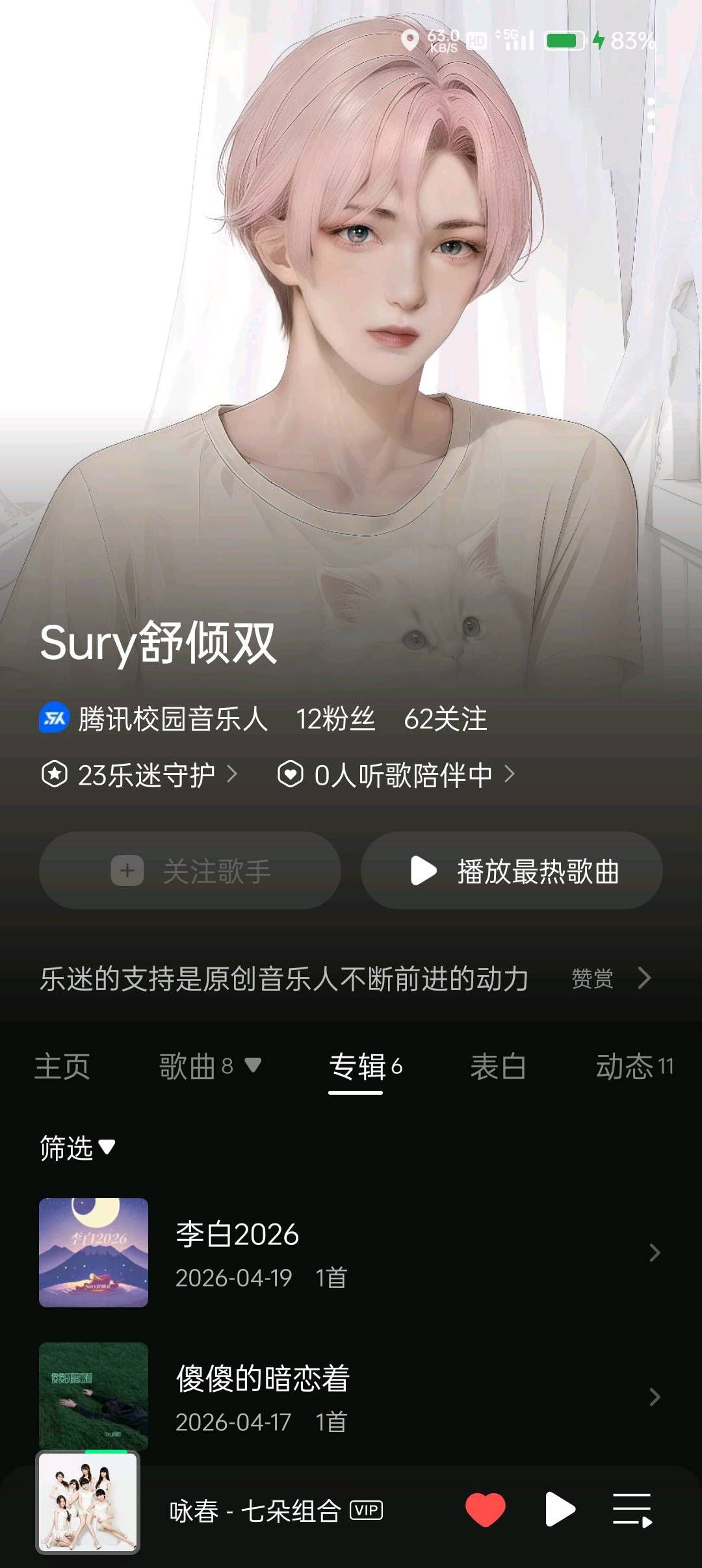 吾本属于音乐的无缘之人可偏偏我却迷恋上 了音乐可粉丝热度寥寥无几 使我在继续与 放弃间踟蹰不定恍恍又惚惚