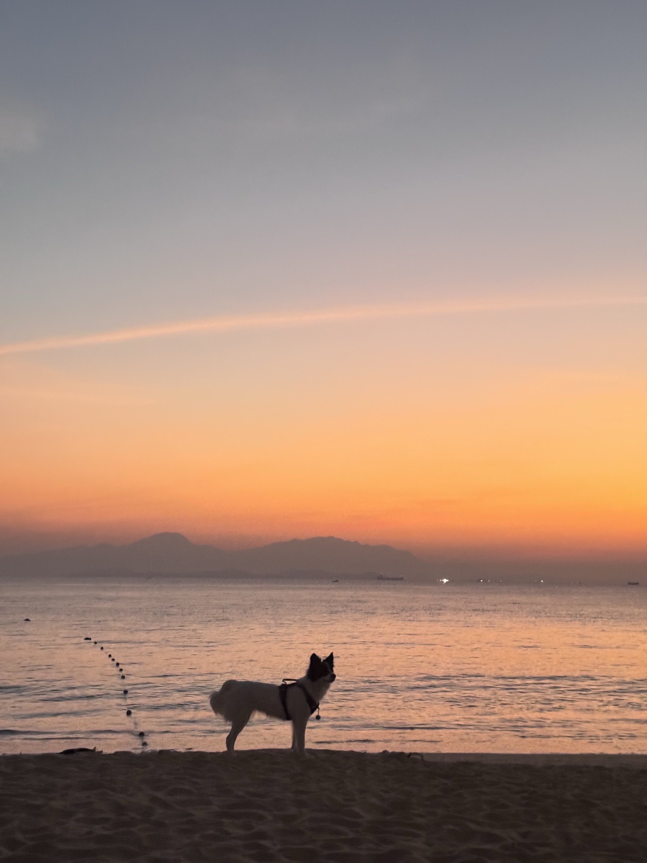 夕阳下的毛孩子