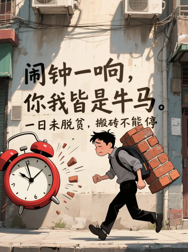 早出晚归,只为碎银几两;日复一日,继续搬砖。