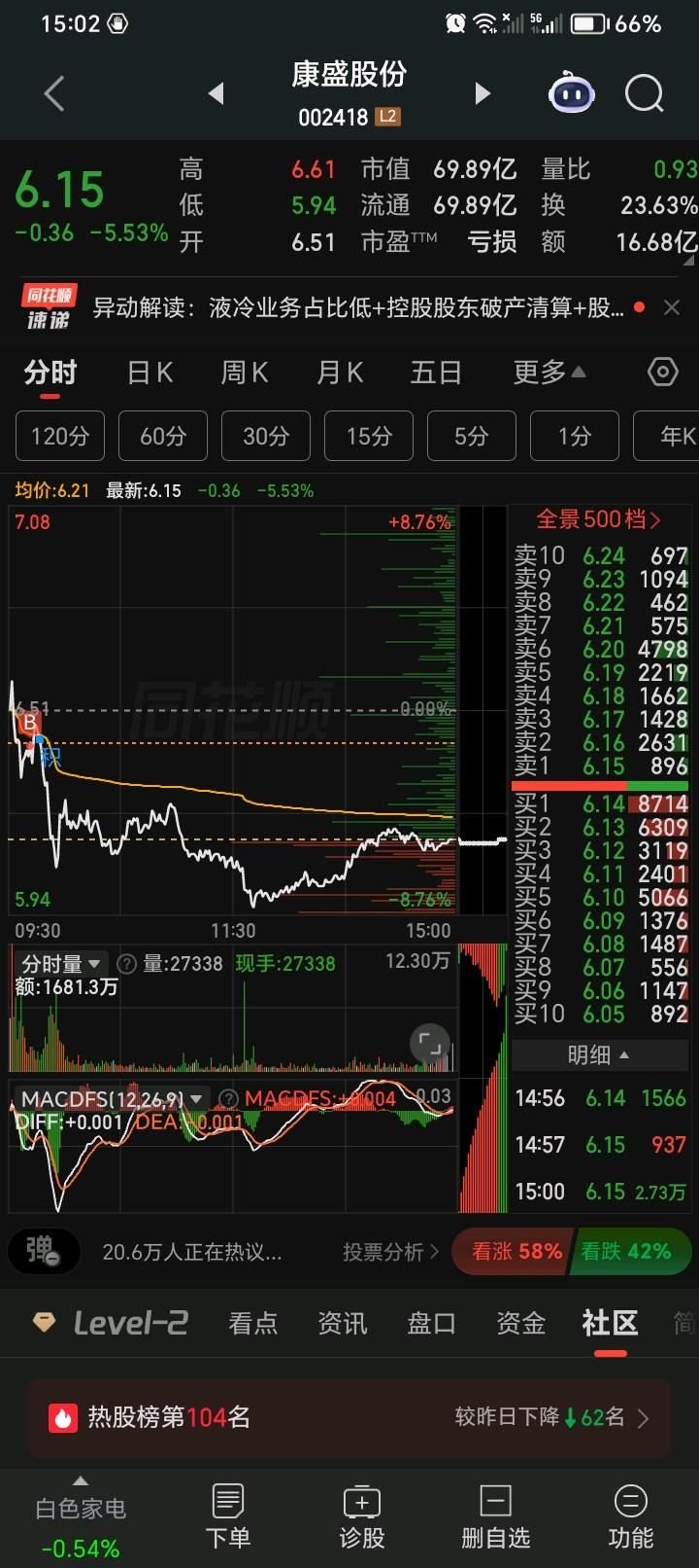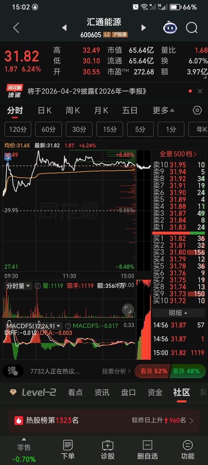 一止盈止损,新进一个 进后破位,未收回,明天止损 问题:纪律上没问题。 认知上有:1.宏观:预期大盘跌和个股买点出现如何取舍。整改:只能能提升认知选好的标的。 2.微观上:放量阴,认知不足。整改:技术,认知都得提升。 3.欲望太重,忽略大盘。容易波动大,不稳。整改:敬畏心不足,贪,不客观太主观,根还是认知上。 总结:进步很大,纪律执行到位,动作没变形。这就很好很好很好。 至于认知上或认知以外的只能一步步修。和认知内却没执行是两回事。 临在提频