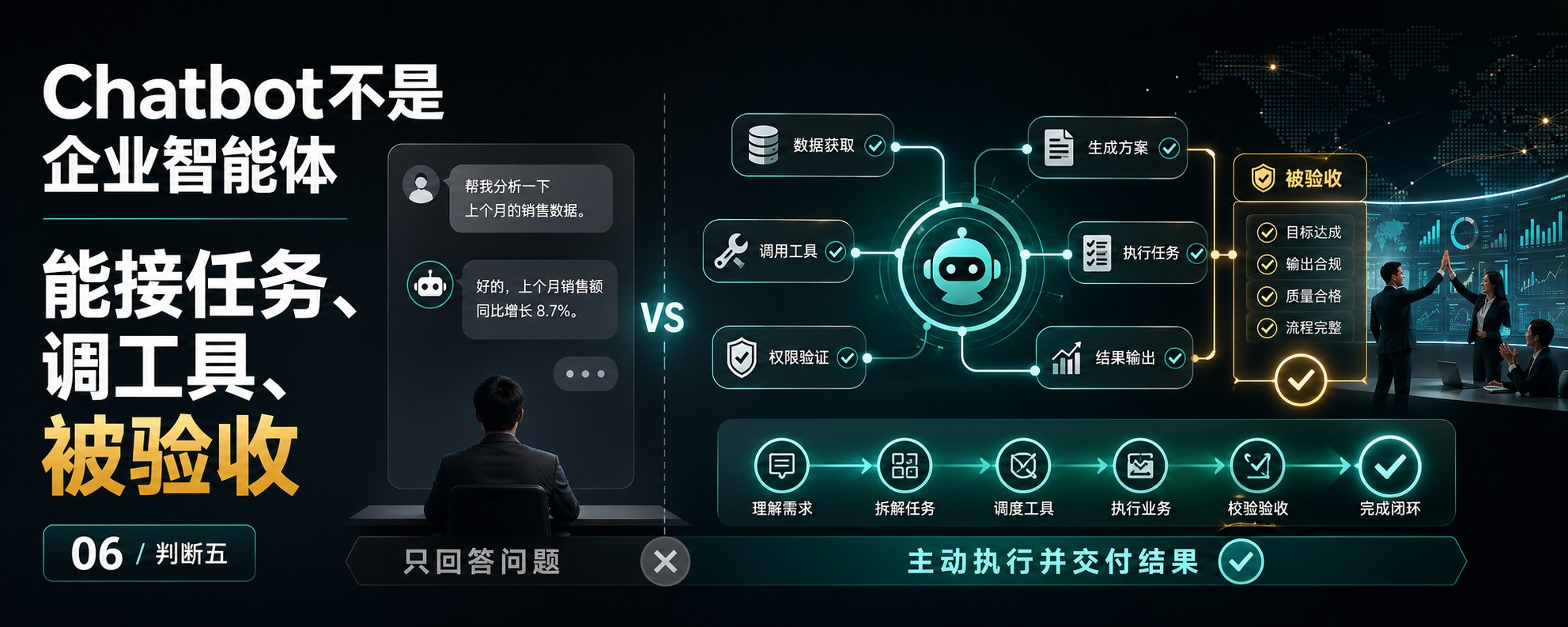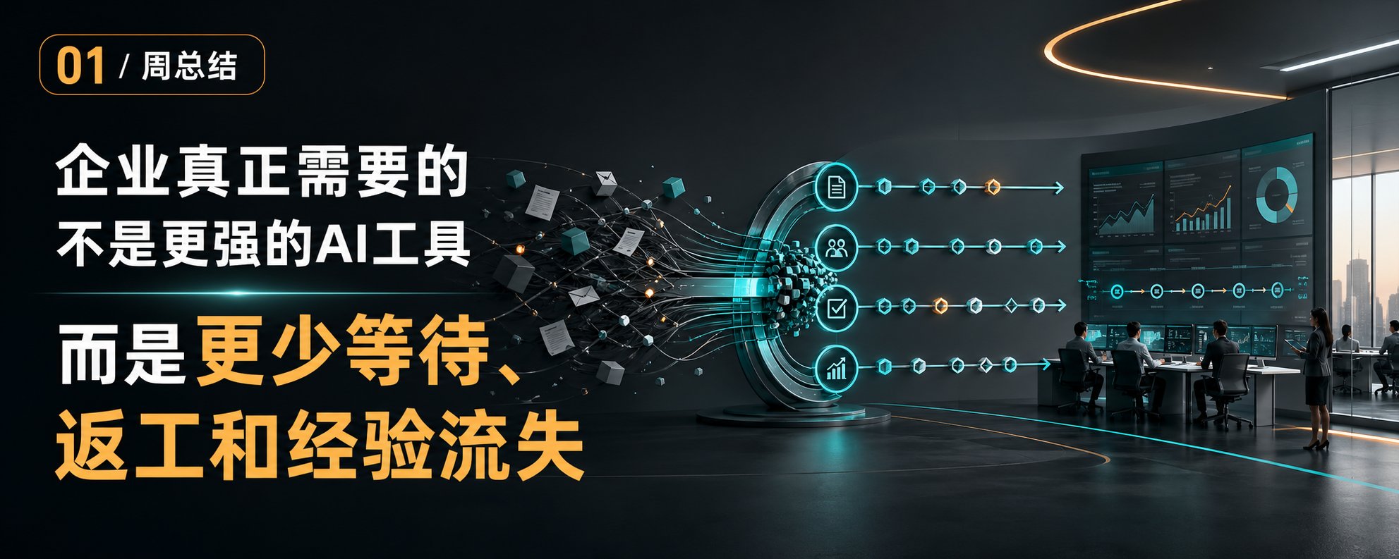 周总结:我这周对企业 AI 的 7 个判断。 企业 AI 的价值不是多买工具,而是重写工作系统。 Chatbot 不是企业智能体。真正的智能体要有任务、权限、工具、边界和验收。 会议纪要的价值不是记录,而是让任务进入系统。 知识库不是资料堆积,而是让系统知道什么时候查、查什么、谁确认。 制造业第一阶段不是替代工人,而是先把老师傅经验、调度规则、异常处理沉淀下来。 个人用 AI 提效,企业用 AI 重写协作。两者不是一个难度。 小闭环比大平台更容易活下来。先改一个每天发生的小流程,比做一个万能系统更现实。 这周我越来越确定: AI 真正进入企业,不会先以“万能助手”的形态发生。 它会先出现在一个个具体流程里: 少一次等待。 少一次返工。 少一次漏跟进。 多一次复用。 多一次可追踪。 企业不为 AI 概念付费。 企业为更快获客、更少返工、更高转化、更低成本付费。