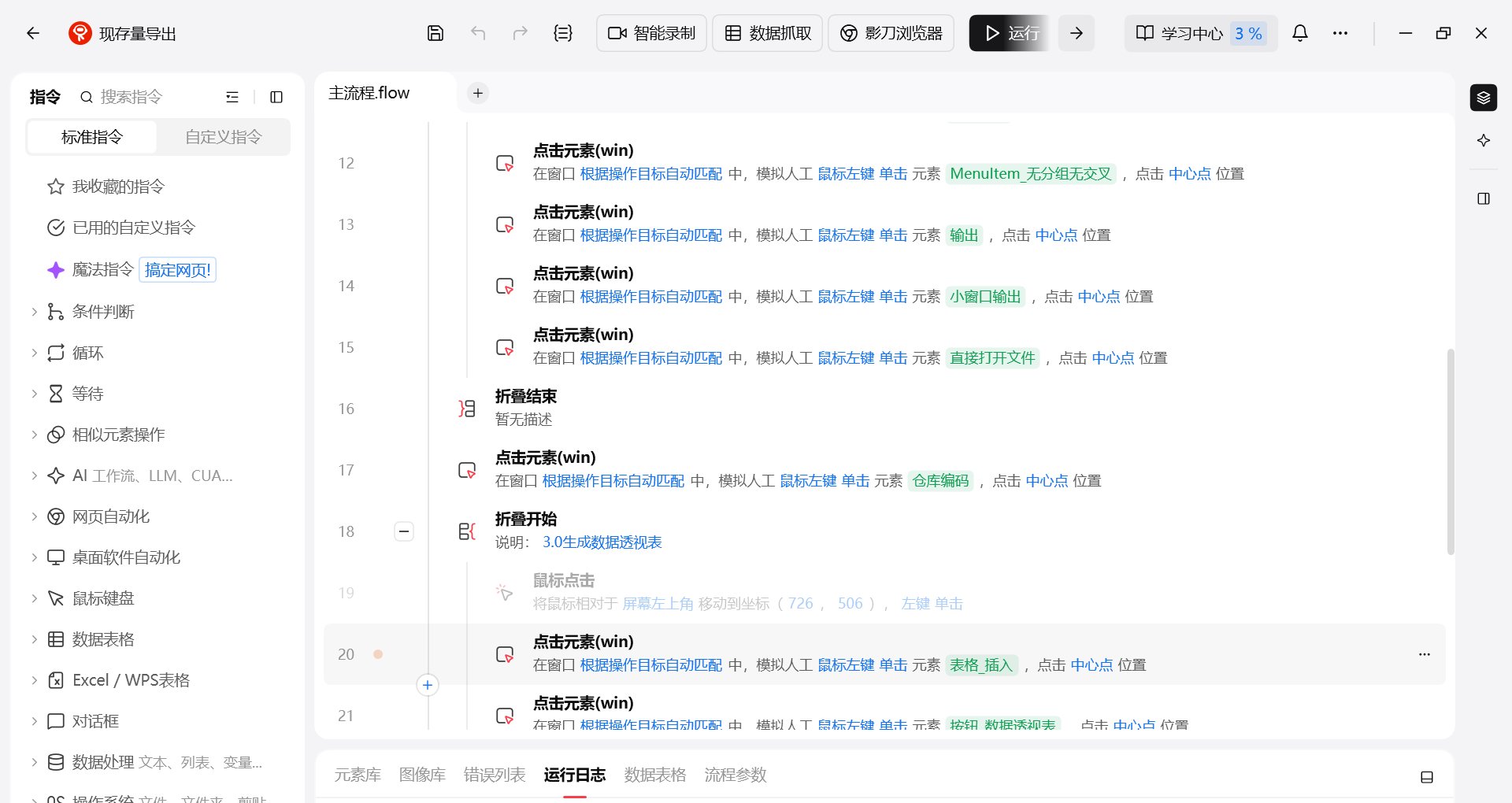 在这里被卡住了,RUN到这里打开输出表格后,无法自动点击指定表格内区域