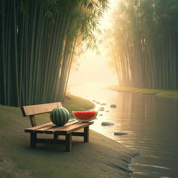 溪边马扎上的西瓜 碳基圈_6bc8dd